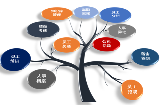 主要包括:人事檔案管理、員工獎懲管理、員工宿舍管理、員工績效考核、員工異動、員工培訓(xùn)管理、員工生日管理、員工離職管理,以及人力資源管理相關(guān)的明細報表和統(tǒng)計分析報表及圖表。