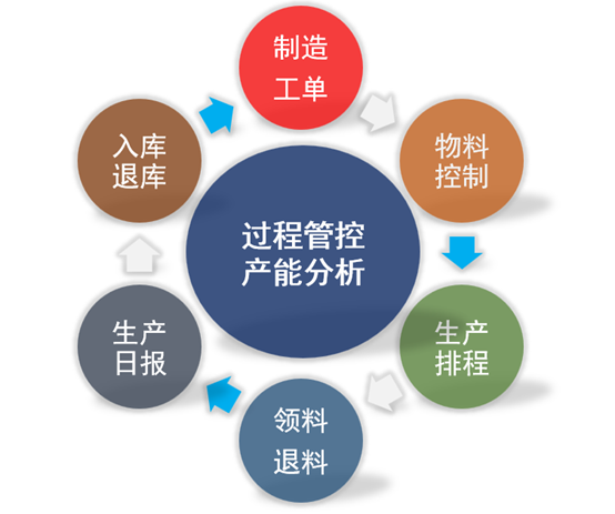 主要包括:生產(chǎn)計劃管理、生產(chǎn)工單下達、生產(chǎn)物料清單生成及控制領(lǐng)發(fā)料、生產(chǎn)領(lǐng)(退)料、生產(chǎn)日報及生產(chǎn)轉(zhuǎn)序、生產(chǎn)進度掌控、生產(chǎn)入庫申請、生產(chǎn)入庫檢驗、產(chǎn)品入(退)庫,以及生產(chǎn)管理相關(guān)的明細報表和統(tǒng)計分析報表及圖表。