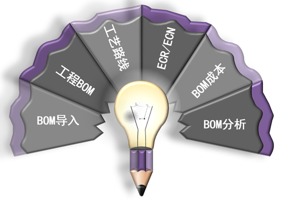主要包括:工程BOM管理、BOM變更、BOM批量變更、工藝路線、訂單配置BOM、BOM查詢、BOM反查、訂單BOM反查、BOM比較、BOM打印、產(chǎn)品標準成本及相關(guān)查詢報表。