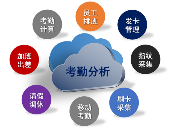 主要包括:員工卡片管理、班次設(shè)定、排班管理、刷卡數(shù)據(jù)管理、員工加班管理,員工請假管理、員工休假管理、員工出差管理、考勤日結(jié)、考勤月結(jié)以及考勤系統(tǒng)相關(guān)明細和匯總分析報表及圖表。