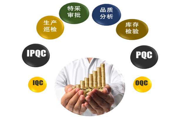 主要包括:QC檢驗標準制定、采購入庫檢驗(IQC)、委外入庫檢驗(IQC)、生產(chǎn)入庫檢驗(PQC) 、出貨檢驗(OQC)等相關(guān)檢驗工作,以及品質(zhì)管理相關(guān)的明細報表和統(tǒng)計分析報表及圖表。