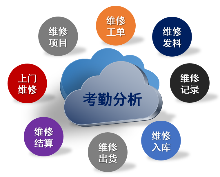 主要包括:維修項目、維修工單、維修領(lǐng)料、維修退料、維修入庫、維修出貨、維修結(jié)算、上門維修等,以及維修管理相關(guān)的明細報表和統(tǒng)計分析報表及圖表。